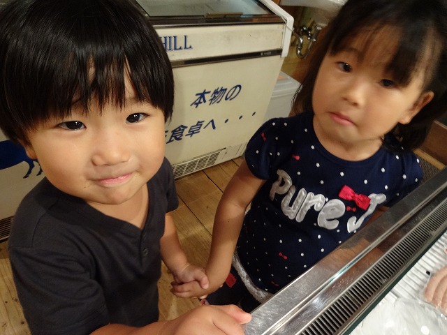 《独り言1》 本日のスナップは、美祢市伊佐「梶岡牧場」直営の 「 Farmer’s  Restaurant 」 Fire Hill の食事風景です。色々と、嬉しい事があって、(今回は)全て「ド田舎会長」=じいちゃん のポケットマネー(Ogori)であります。8番目の孫、(慶成くん)お店にお手伝いに来られていた方の子供さん?女の子の手を(しっかりと)握っていますね!(どちらが先に手を出したのか?握り方から推測すると?一目瞭然!Acya~)これは、中々のツーショットであります。このとき2歳10ヶ月 早々と‘???に手を出したか!’ 何せ!頭のてっぺんに、ギリギリが二つありますからね。先が思いやられるかも???な孫でありますが、、、何とか、跡目を継いでもらいたいですね、、!